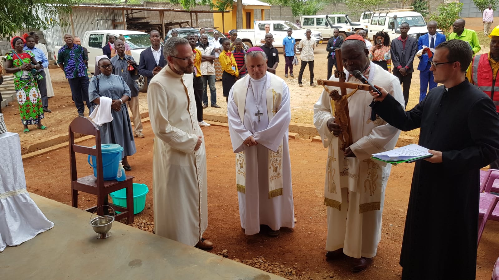 Od ponad pięciu lat nasza parafia jest placem budowy – dosłownie i w przenośni. Począwszy od sierpnia 2023 r. do lutego 2025 r., dzięki finansom z diecezji tarnowskiej powstał piętrowy budynek plebanii – domu misyjnego tarnowskich księży fidei donum w Republice Środkowoafrykańskiej. Został on wzniesiony przy nieocenionej pomocy wolontariuszy z Polski, panów: Jana Nytki, Andrzeja Stachury, Jerzego Dąbrowy, Stanisława Filipa, Jana Ochaba, Marka Zycha, Ryszarda Raka, Macieja Mikołajczyka, Rafała Raka i Kazimierza Gawrysia. Obok plebanii i ogrodzenia wzniesiona została grota Matki Bożej z Lourdes, której fundamenty położył i pierwotny kształt nadał nasz wolontariusz inż. Jan Nytko. I to nie koniec naszych prac. Jesteśmy teraz w trakcie prac wykończeniowych kościoła parafialnego, którego budowę wsparły: Dzieło Misyjne Diecezji Tarnowskiej, Papieskie Dzieła Misyjne w Rzymie oraz dobroczyńcy z Francji: parafia w Monfort (archidiecezja Rennes), parafia Saint Genis-Poilly (diecezja Belley-Ars); dobroczyńcy z diecezji tarnowskiej (kapłani oraz wierni świeccy), jak również lokalni dobrodzieje z archidiecezji Bangui.